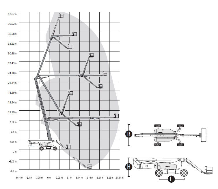 Ready to rent: our Genie Z135/70 Articulated boom lifts provides a working height of 43,15 m and a maximum of 21,3 m horizontal reach. The maximum lift capacity for this Genie is 272 kg.