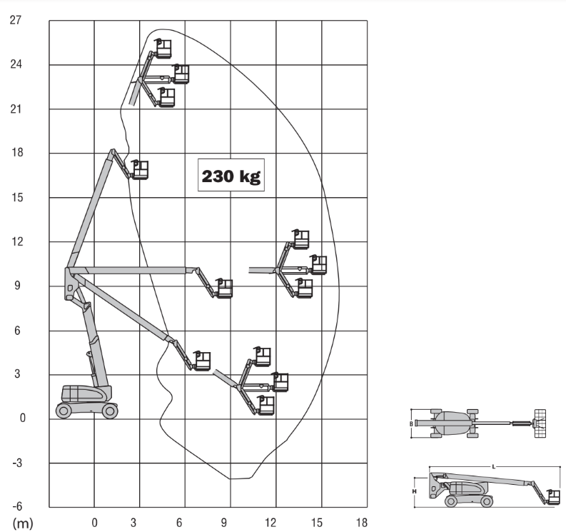 Ready to rent: our JLG E800AJ Articulated boom lifts provides a working height of 26,5 m and a maximum of 15,7 m horizontal reach. The maximum lift capacity for this JLG is 230 kg.