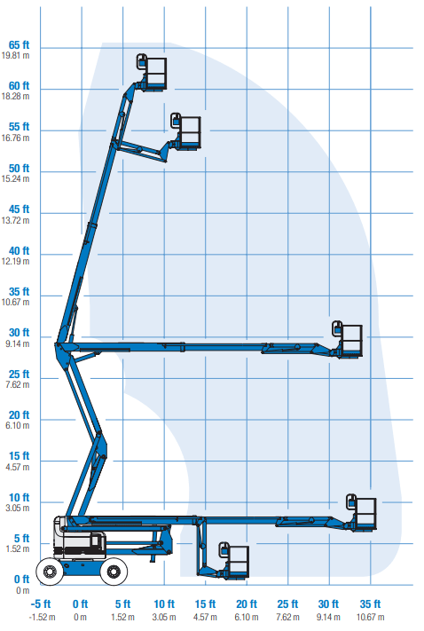 A Z boom lift by Genie is one of the most flexible machines to work at heights, ideally used to work outdoor construction and industrial applications. Manlift offers highly reliable and well maintained Genie boom lifts for rent based on different requirements.