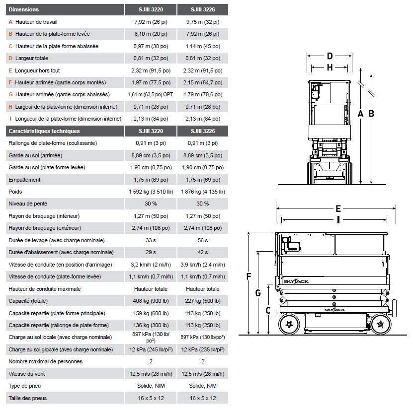 The Skyjack SJIII3226 is an electric scissor lift and provide working height of 9.90 m. Consistent with Skyjack’s robust and reliable design features, the SJIII 3226 features Skyjack’s standard color coded and numbered wiring system with analog based controls. Offering 25% gradeability and a working height of 3ft, the SJIII 3226 can also be driven at full height. The lightest machine in its class, it also features a standard 3ft roll out extension deck and variable speed rear wheel hydraulic drive.